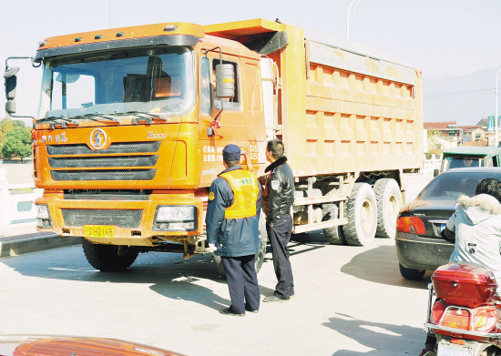 12月5日上午,嵊州市路政、运政、交警等部门联合组织开展了车辆超限超载专项整治行动。两个巡查小组,分别在该市104线、罗小线、嵊张线等展开巡查和整治,共查处8辆超限超载车辆。 (记者张亮宗通讯员张樟兴摄)