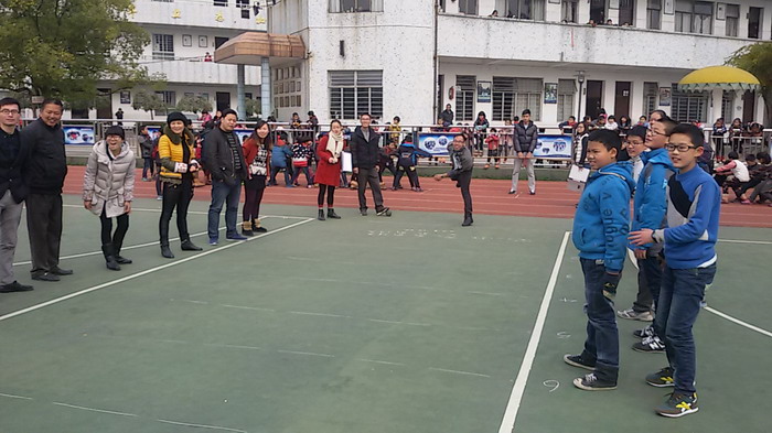 本次竞赛活动设置了三个趣味竞赛项目:实心球掷远、拔河和跳长绳。在整个比赛中,角逐激烈,高潮迭起,平时严肃的老师们倾刻化身为矫健的运动员,动作优美、干脆利落,犹如翩翩起舞的飞燕向我们飞来。特别是在拔河比赛时老师们情绪高涨,互相鼓励、互相帮助,发扬了团结协作的精神风貌,将运动会气氛推向极致,竞赛场上加油呐喊的笑声与掌声此起彼伏,每个老师的脸上都写满了喜悦和幸福。