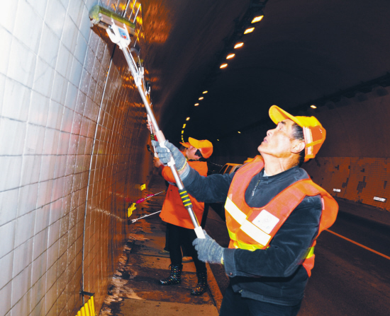 清洗隧道污垢展现城市文明