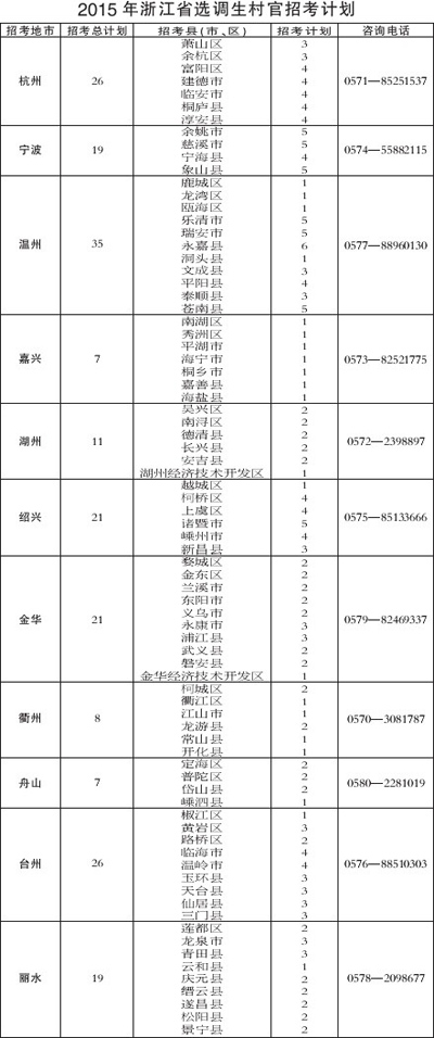 2015年浙江省选调生村官招考计划