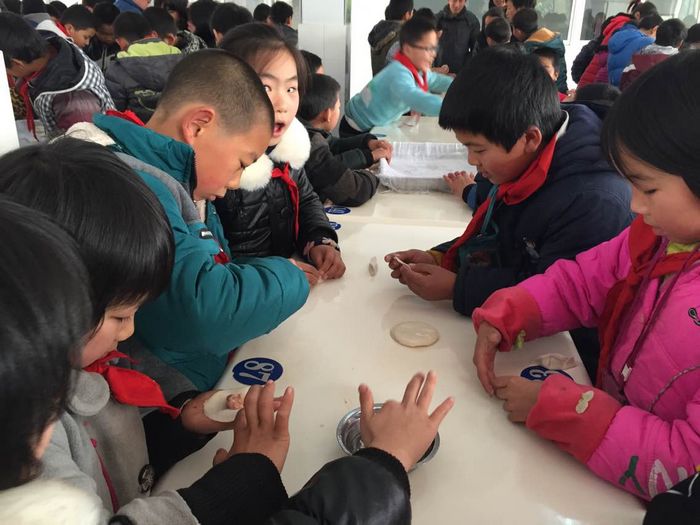 看电影、包饺子——优秀的影片教育是孩子们喜闻乐见的,白泥墩小学是一所完小,学生平时观看电影的机会并不多。这一次放映的是动画片《里约大冒险》,孩子们分享着人类与动物间的美好故事。包饺子,蒸饺子,把迎新活动推向了高潮。学生吃着热气腾腾自己包的饺子,心里别提多高兴了。他们学会了包饺子,获得了动手劳动带来的快乐。