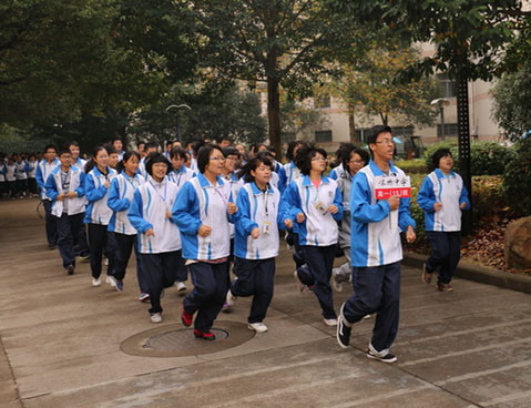 嵊州中学为了确保学生每天都有一小时的体育锻炼时间,多年来,学校因地制宜、精心策划、用心组织,利用大课间活动等时间,组织全校学生进行阳光体育冬季长跑活动,磨练学生的意志品质,培养良好的锻炼习惯,有效提高学生身体素质特别是耐力素质水平。