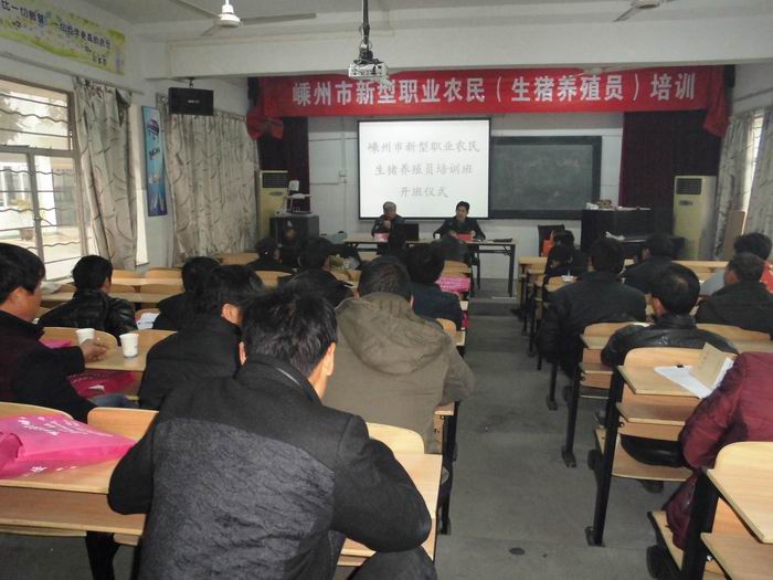 2月2日上午,由嵊州市畜牧局、嵊州市农民培训学校、黄泽镇成人文化技术学校等单位联合举办的新型职业农民(生猪养殖员)培训班在黄泽镇校多媒体教室开班。来自全镇从事生猪养殖的68名学员参加了开班仪式,此次培训的对象主要是生猪养殖员,培训时间为期8天,目的是提升现代生猪养殖者素质及技能,更好的实现科学养猪、养无公害猪。