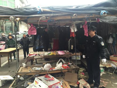 2月4日上午,市城管执法局连同甘霖镇城监中队对甘霖镇农贸市场乱设摊现象进行整治,共拆除乱设摊位7个。