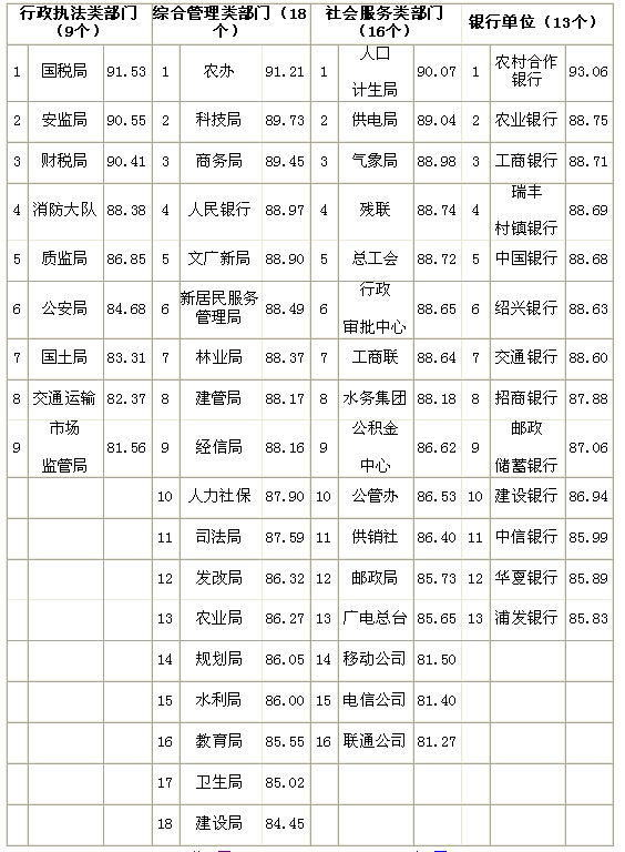 2014年软环境指数和关键岗位跟踪督评结果公告