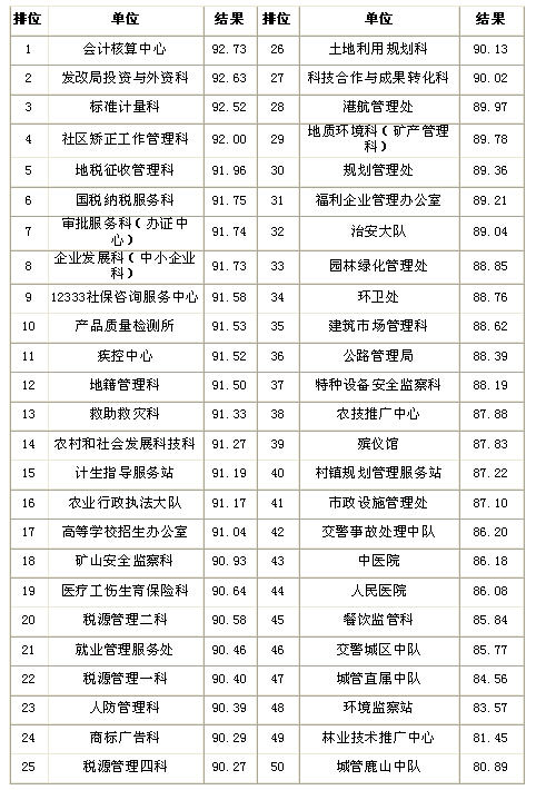 2014年软环境指数和关键岗位跟踪督评结果公告