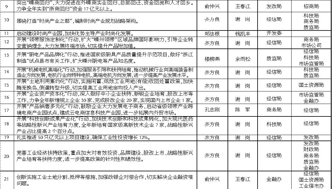 2015年《政府工作报告》重点工作任务分解表