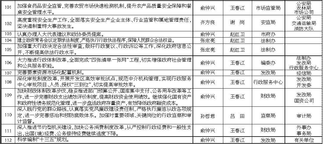 2015年《政府工作报告》重点工作任务分解表