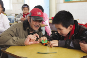 瞧,那长发长须、气质不凡的人不正是我市著名的泥塑大师宓风光老师吗?他是学校聘请来的客座教师,在欢乐泥吧社团里,由学校的一位实践课教师做助教,进行着捏泥人的教学工作。看着一团团普通的泥巴在宓风光老师的巧手里变成了一个个栩栩如生的人物形象,孩子们新奇不已,也激起了创造的兴趣。