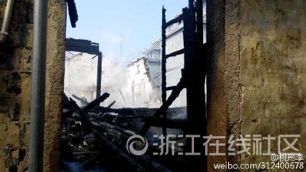 据北漳村联村干部竺均俊介绍,当村民发现火情时,房子里已有浓烟散出且不断闪出火光,村民随后立即报警。消防员赶到后发现,老台门内已经浓烟滚滚,火光冲天,所幸里面居住的人都已经及时逃出,只有一位住户头部受伤。据悉,这是一处年代久远的木结构老台门,目前只有3户人家还在里面居住,其他房间都堆满了杂物,容易引起火灾。