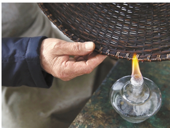 老艺人在用传统的工艺制作竹编。