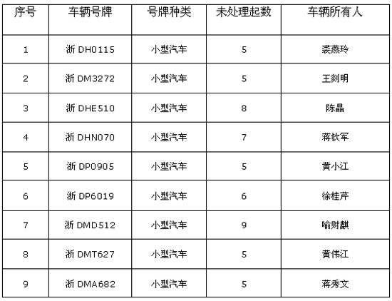 5起以上违法未处理车辆列表(三十三)