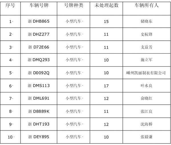 5起以上违法未处理车辆列表(三十九)