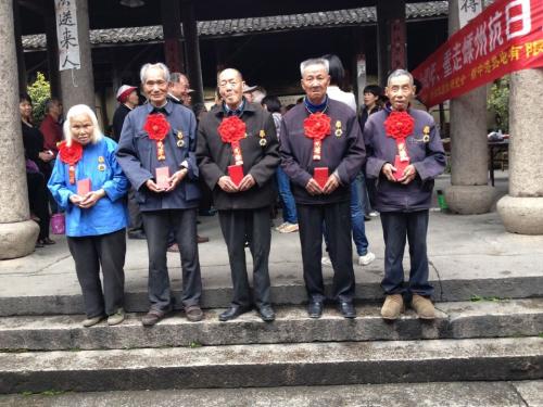 4月3日在北漳镇东林村祠堂举行了纪念抗战70周年,重走嵊州抗日路的活动。