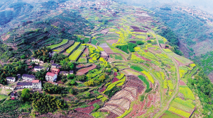 嵊州崇仁镇淡山村的油菜花田,以其高山丘陵的特殊地理位置,成为近年来该市一处新增的农村休闲旅游景点,吸引着许多自驾游客的眼球。图为日前航拍的淡山村风景。
