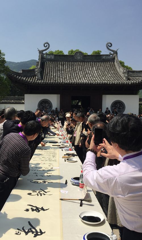 昨日,第十二届中国嵊州国际书法朝圣节在此启幕。此前一天,作为本次书法朝圣节系列活动之一,来自全国各地120多位书法家、摄影家及外国留学生,共同参加了“走唐诗路、书唐诗情”名家唐诗之路采风行活动。