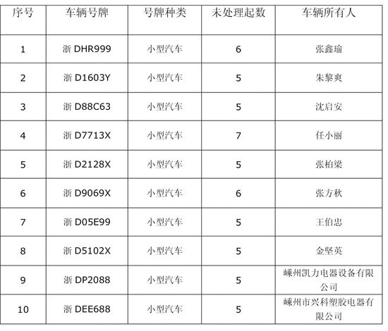 5起以上违法未处理车辆列表(三十六)
