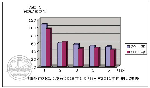 按照《环境空气质量标准》(GB3095-2012)评价,2015年1-5月份,全市环境空气质量指数(AQI)优良天数比例为76.0%,与去年同期相比,上升4个百分点。PM2.5平均浓度为59微克/立方米,比去年同期下降9.2%。