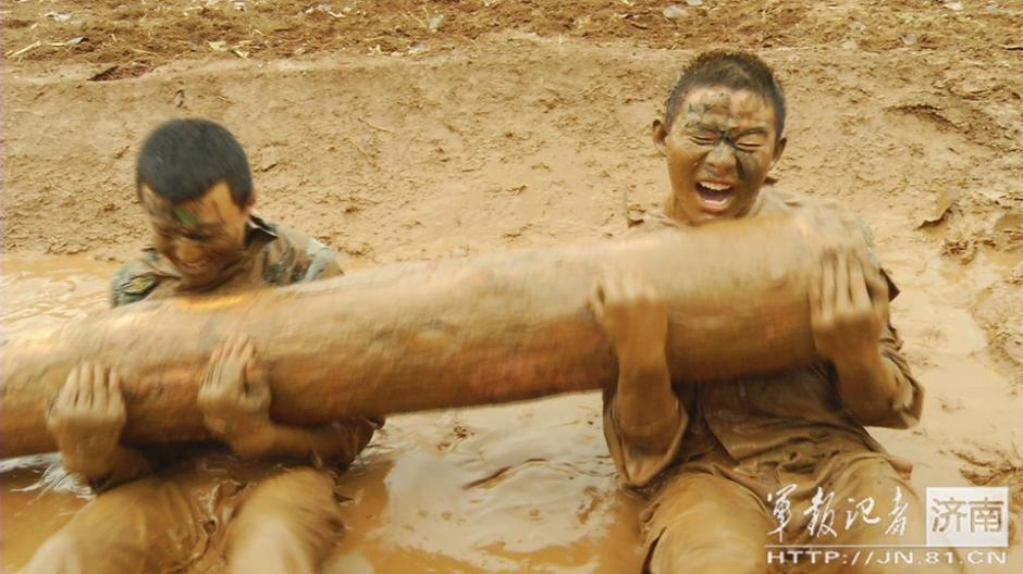 陈孟德正在进行圆木训练