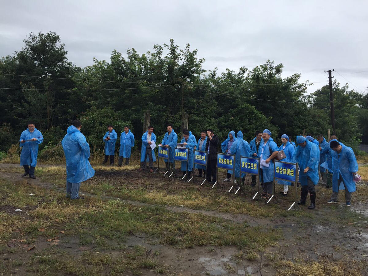 在实施阶段,因恰逢下雨天气,对于演练提出了更高的要求,所以指挥部举行了一次碰头会,旨在加强各小组之间的沟通,也统一了各方思想。然后,在镇长一声令下,在山口村村民和村干部的配合下,各小组各司其职,精心组织,克服多重困难,经过一个多小时的努力,演练顺利完成。