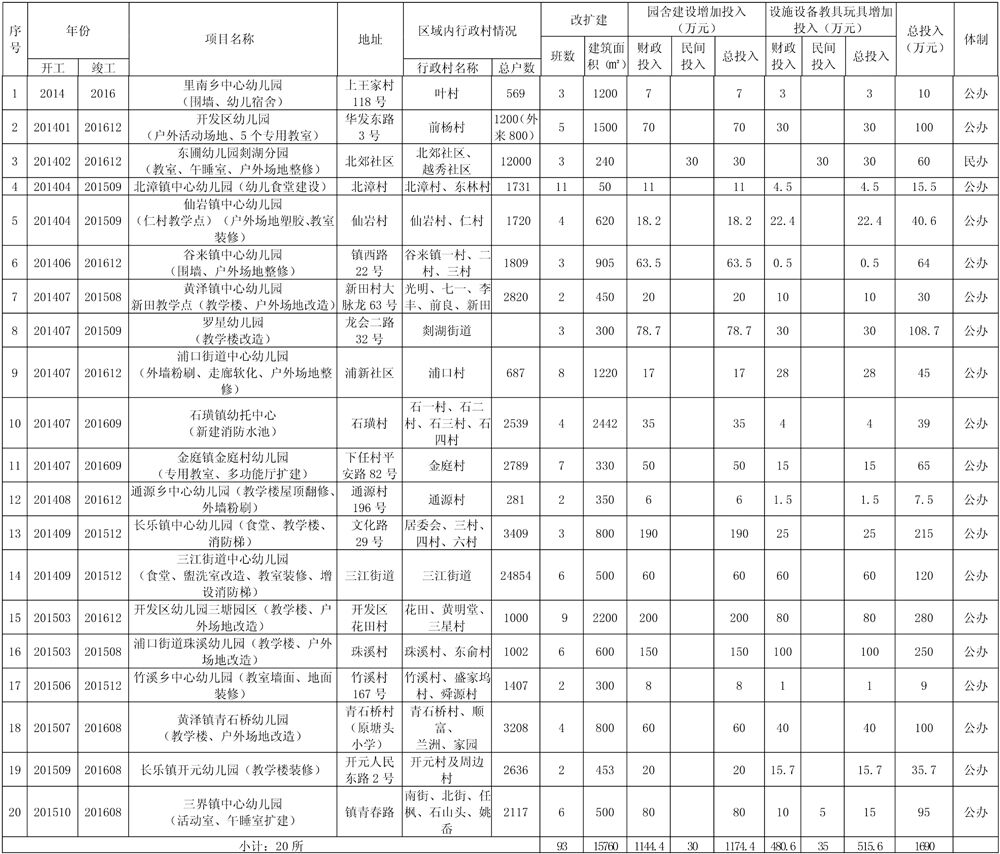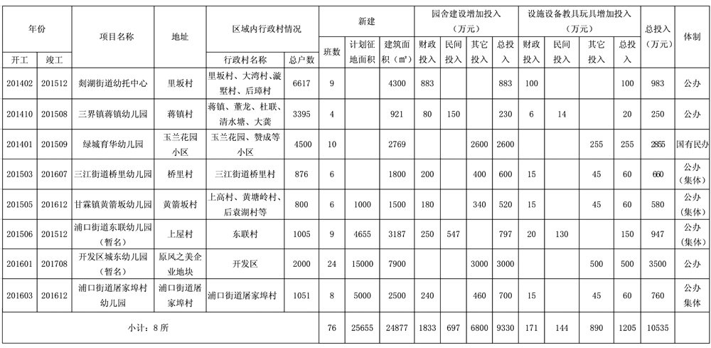 嵊州市学前教育第二轮行动计划园舍建设规划表