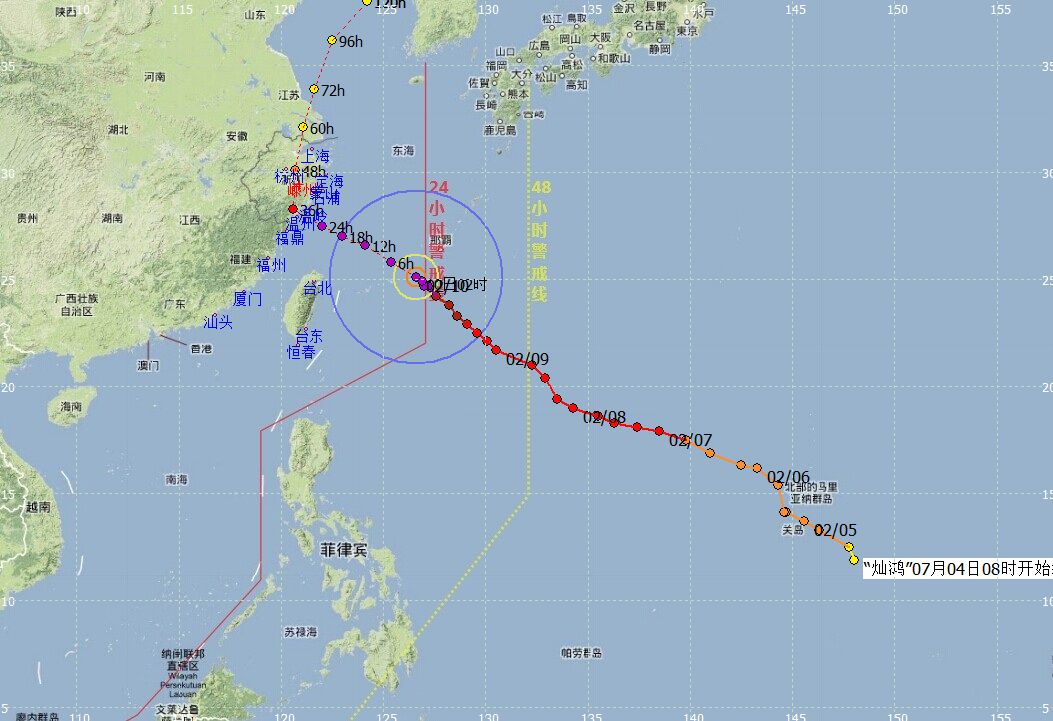 台风动态:预计“灿鸿”未来将以每小时20到25公里的速度向西北偏西方向移动
