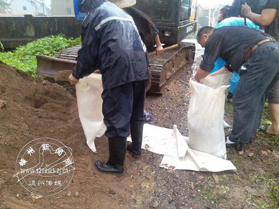 今天上午8时,受台风“灿鸿”影响,谷来镇护国岭村河道水位暴涨,河水不断侵入两边农田。该村迅速组织村干部与村民装填沙袋,用沙袋筑成临时堤坝,减少受损面积。