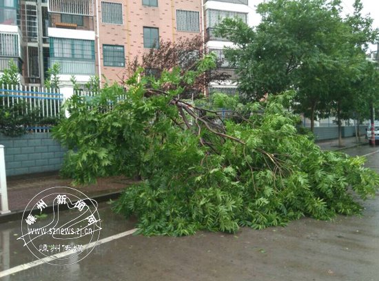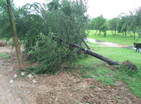 受“灿鸿”影响 多处树木被拔起