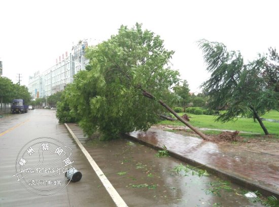 受“灿鸿”影响 多处树木被拔起