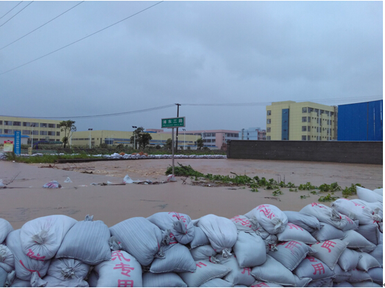 今日凌晨,四明江浦东三路段,水位超出桥面,开发区(浦口街道)城管中队联合村防汛人员对道路进行沙袋防洪,使四明江大部分河水沿河道前行。