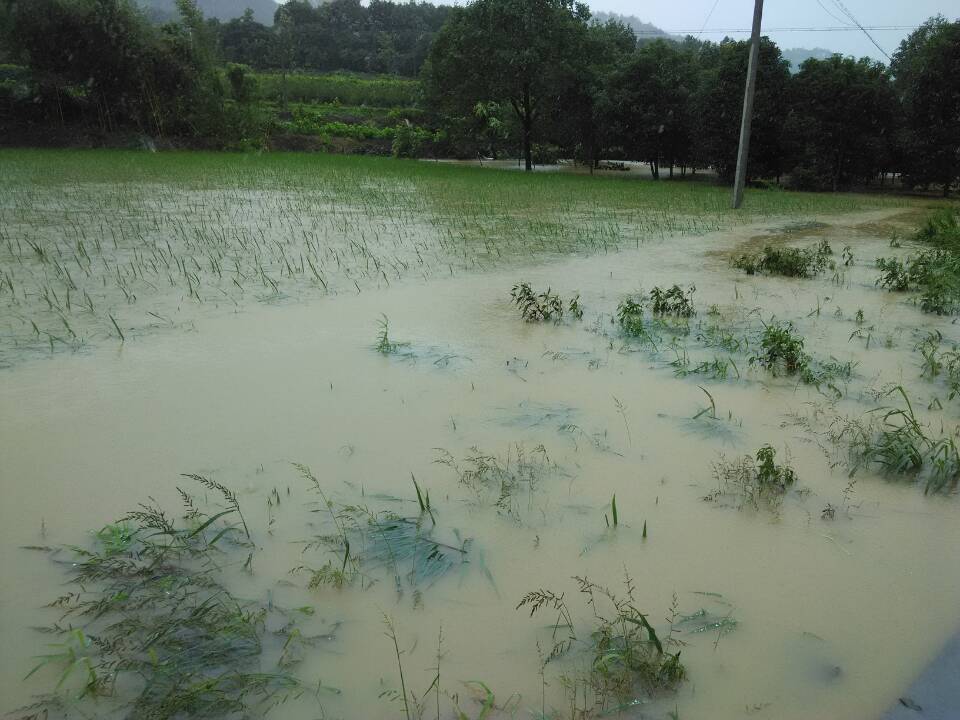 受台风“灿鸿”影响,温泉西湖自然村农田受淹。