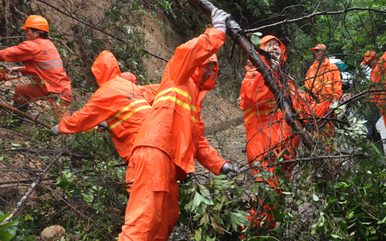 7月11日,受到台风“灿鸿”影响,我市出现狂风暴雨天气,辖区内多处路段出现塌方、倒坎等道路险情。