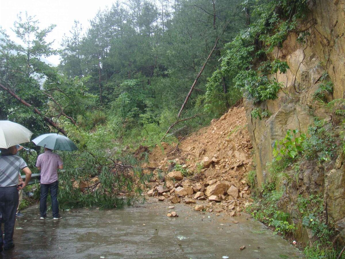由于目前还是台风期,根据商讨,决定在塌方处设立警示牌,等台风过后在相对安全的条件下再进行塌方以及上方巨石的处理。