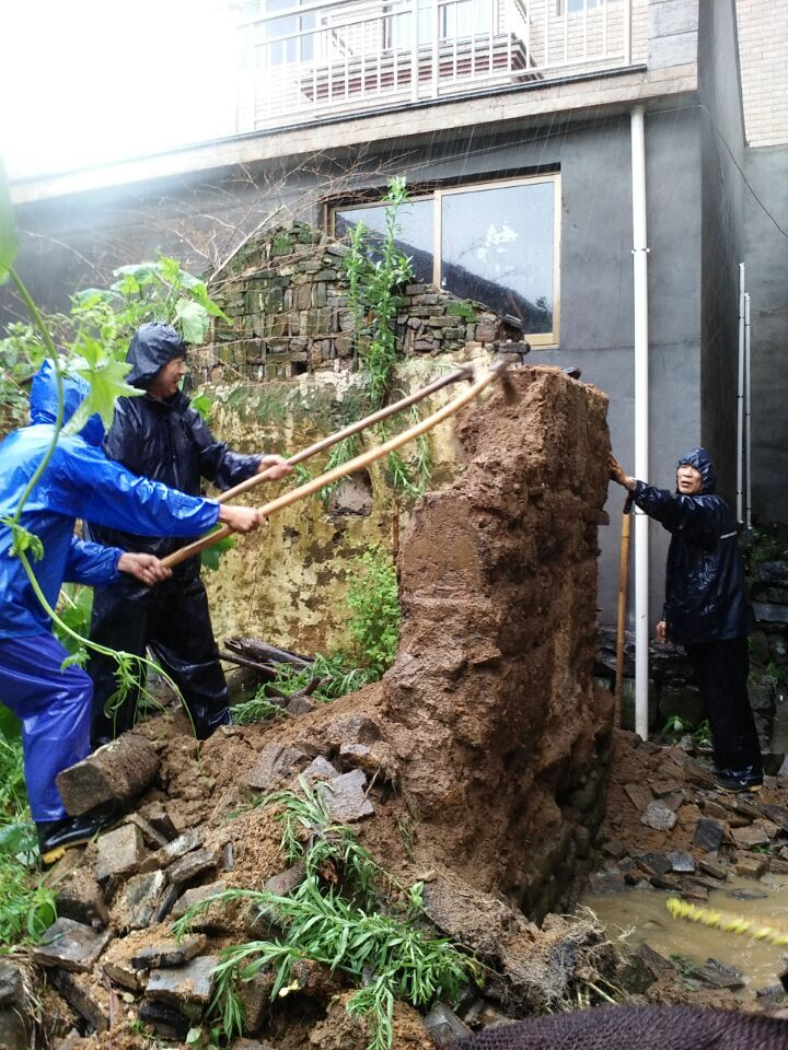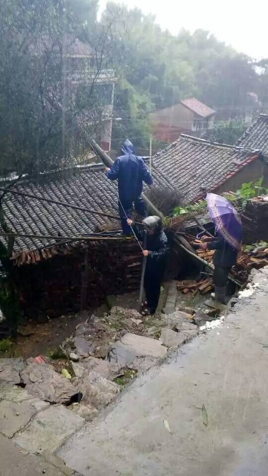 直至下午3时40分,溪后村大尖山暴发小型泥石流,泉岗村文保点之一的起祥小学处左侧发生泥石流坍塌,大风大雨还在继续,下王镇党员干部和村干部们仍然抗战在第一线。