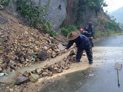 “叮铃铃…”7月11日上午7时左右,下王镇党政办的两部电话接连响起,连夜驻守在村里的联村干部们开始陆续向镇里报送村里的受灾情况及群众安置情况。“下王村受灾面积达60亩,一处房屋倒塌”、“清白线约10处路面坍塌、一处住房倒塌、泉岗村断电”、“石舍村4间房屋倒塌、环村路淹没”、“大浦平沟渠冲毁200米,毛竹损毁严重,无人员伤亡”……一连串数字无不昭示着灾情的刻不容缓,镇长缪功明听完灾情汇报后,立刻做出部署:请各村着重做好地质灾害隐患点人员及危房户、受灾户的应转必转工作,必须把群众生命安全放在首位;电力部门要及时做好电力抢修恢复工作,各村两委会干部做好河道及主干道路巡查,及时发现隐患,排除路障,保障公路畅通,也请所有工作人员注意自身安全。随后缪功明便带领镇防汛防台指挥部相关成员前往梅坑、上店、石舍等沿河村查看险情。