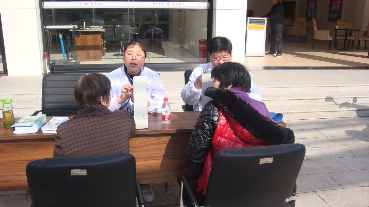 图为退休医师为老年人开展慢病知识讲座