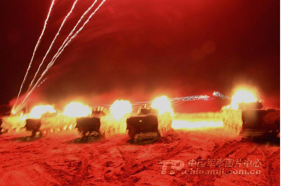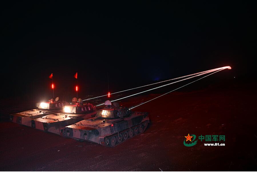 南京军区某装甲旅组织坦克分队进行夜间教练射击。何生 摄