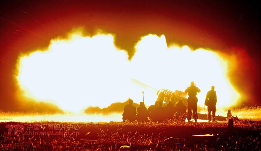 2013年10月13日,沈阳军区某炮兵团组织部队进行夜间实弹射击训练,锤炼部队打赢能力。