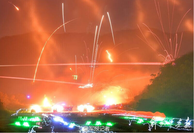 粤东某地初夏之夜格外夺目。图为陆军第42集团军进行“合成营山地进攻战斗”实弹战术演练。岱天荣 摄
