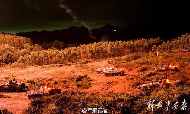 粤东某地初夏之夜格外夺目。图为陆军第42集团军进行“合成营山地进攻战斗”实弹战术演练。岱天荣 摄