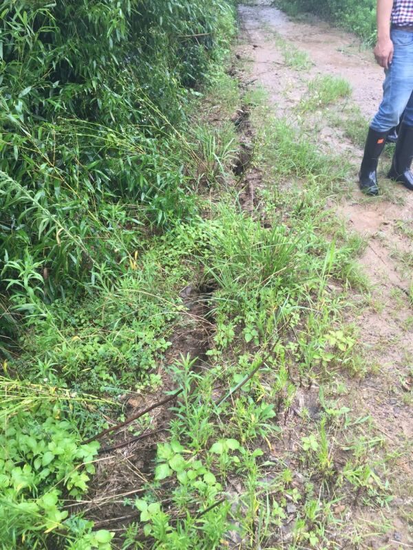 今天下午2点多,市水利局2名专家与甘霖镇政府工作人员到现场进行实地踏勘。这条裂缝在石璜江左岸沙坝处,长150米至200米,可以伸得下一只脚,裂缝与江面之间还长着不少竹子。江堤的另一侧,是甲沙坂村,如果决堤,势必会造成村里民宅进水、粮田被淹的后果。专家们经过细致的踏勘和分析,认为需要先用雨布将缝隙盖住,防止雨水渗入,扩大裂缝;加强巡查,关注缝隙的变化;调集镇应急分队待命,预备好200只沙包,如果缝隙持续扩大,或有塌陷迹象的,就马上组织应急队员以沙包加固堤坝。