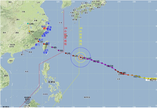 72 25.1 118.8 960 13级(38米/秒) 台风
