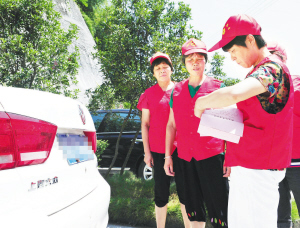 日前,嵊州市石舍村的村嫂正在巡查村内停车秩序,并对部分乱停车的车辆张贴友善提示——《规范停车告知单》。据了解,嵊州的村嫂服务队在该市各级妇联的组织与激励下,正成为当地美丽乡村的建设者与守护者。