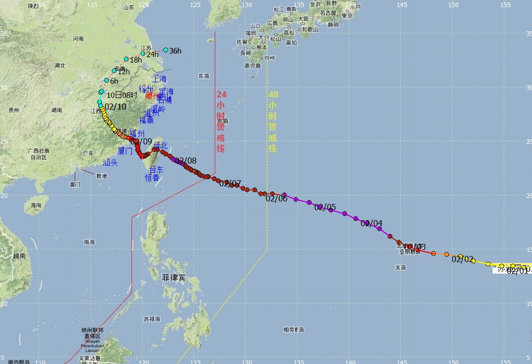 36 33.4 122.3 1002 5级(10米/秒) 热带低压