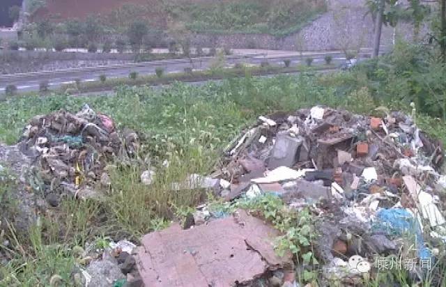小新新:在罗小线与戴望村交界处找到了这处建筑垃圾,大概有十多米长,路两边到处都是。