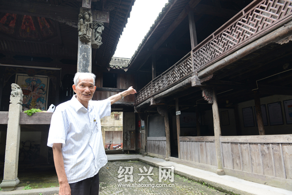 “那年我14岁,祠堂戏台南面楼上的几间房子就是当年中共嵊新奉中心县委和嵊新奉县办事处的办公室,在他们的熏陶影响下,这里的村民自发组织自卫队,一起加入了抗日队伍。”