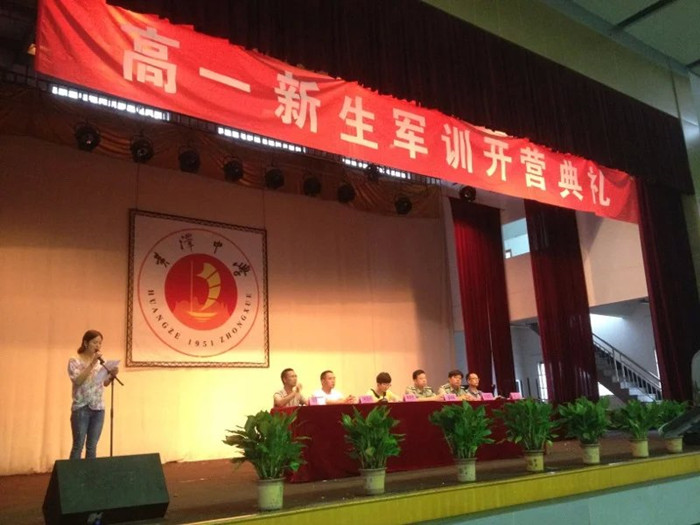 开营仪式由高一年级主任方忠老师主持。庄严嘹亮的国歌声结束后,黄泽镇人武部部长金丰来同志作为本次军训营营长为全体新生作军训动员讲话,他要求全体新生严明纪律、正视困难、刻苦训练,提出“掉皮掉血不掉队,流汗流血不流泪”的不怕苦不怕累的顽强精神。政教处主任何见利老师与副校长陈丹青老师分别给新生提出了具体的军训要求及期望。最后教师代表韩晓老师与学生代表上台表态将以最饱满的热情投入为期一周的军训中,表达了新一届高一师生的心声。