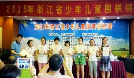 2015年7月16日—19日,由浙江省体育局、浙江省体育总会主办的第十五届浙江少年儿童围棋锦标赛在宁波市日月宾馆举行。吸引了全省各地20支代表队130名小棋手参赛,本届比赛各县市和棋院都派出了精英,可谓强手如云。特别是甲组都是四段和五段选手,多次参加过全国、省、市围棋比赛。经过四天九轮的角逐,嵊州市代表队获得女子团体亚军、男子团体第八名的好成绩;男子个人获甲组第七名、乙组第十六名、丙组第二名;女子个人获甲组第一、三、五名,乙组第八、十二名。马寅初中学初中部八(12)班金梦佳同学获得女子甲组第一名、团体亚军。