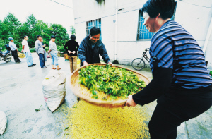 23日,在嵊州10多万亩桂花花木田里,成千上万的村民在采摘盛开的桂花,像卖茶叶一样,他们以每公斤7元左右的价格卖给村里的收购点。在该市石璜镇,每个村都有桂花收购点,收购桂花制成植物香精或天然香水。