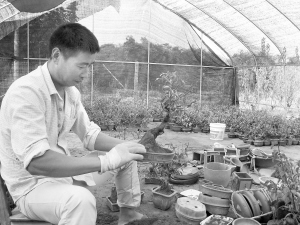 随着人民生活水平的提高,适应庭院室内绿化需要,七年前他在嵊州花鸟市场开了一个梅花庄,建成一个集小梅花盆景、室内绿色植物盆景为一体的综合性盆景销售点。室内绿化小盆景都是南方植物,四季常绿,不少绿化小盆景还能净化空气,受到市民的青睐,销量逐年提高,生意红火。他又以此为窗口,将一批批梅花盆景销往全国各地。由于口碑好,客户介绍给客户,他由此迎来了一批又一批回头客,还结识了不少新客户,生意红火,销售不用愁,近年仅梅花小盆景的销量一年就可达1000多盆。